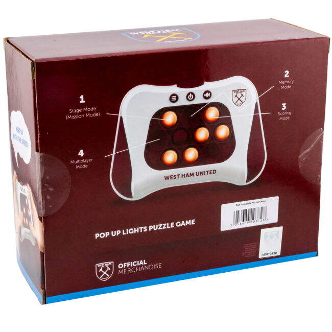 [breathable design] [football fan apparel] [supporter gear] Hand held quick push children's sensory fidget gameWhite game pad, featuring the West Ham claret detail and crestStage Mode, Memory Mode, Scoring Mode and Multiplayer Mode3 x AAA Batteries required (not included)Official licensed productSize: Approx. 13.5cm x 5cm x 10cmPackaging: In a display box